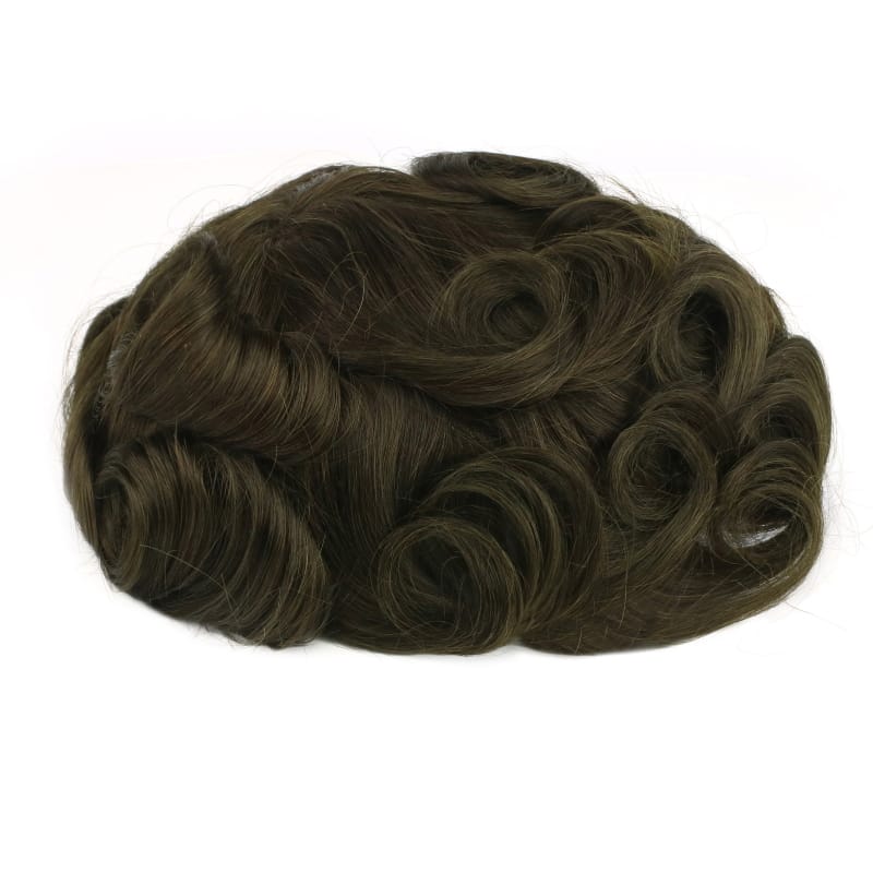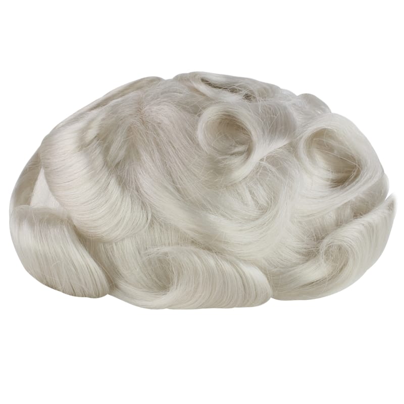 For gray percentage on stock mens toupees, all hair is synthetic EXCEPT 80% and 100%, which are a 50/50 blend of human and synthetic gray hair. On custom orders, we generally recommend human gray hair for gray percentages above 45%. This ensures soft, manageable hair throughout.