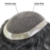 The French Lace with PU all around custom toupee offers a breathable base with easy adhesion and PU all around.  These hairpieces are popular because the PU around enables easy glue or tape cleanup,  a strong hold and stability where the majority of the hairpiece is breathable.  These hair systems are better for brushdown styles compared to the hairpieces which have lace at the front for more invisibility.